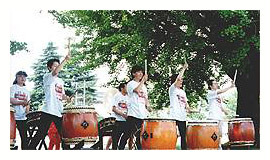 天馬太鼓の演奏でランナーを応援